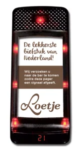 Das Gästerufsystem verkürzt die Warteschlange der wartenden Kunden, Neukunden sehen keine langen Warteschlangen und geben somit schneller eine Bestellung auf. Nachdem der Gast eine Bestellung aufgegeben und bezahlt hat, erhält er einen Wireless Coaster oder Pager (Beeper/Buzzer) zum Mitnehmen. Wenn die Bestellung fertig ist, aktiviert Ihr Mitarbeiter den Coaster oder Pager vom Terminal aus. Auf Wunsch sendet der Coaster ein Licht-, Ton- und/oder Vibrationssignal aus, damit der Gast weiß, dass die Bestellung abgeholt werden kann.